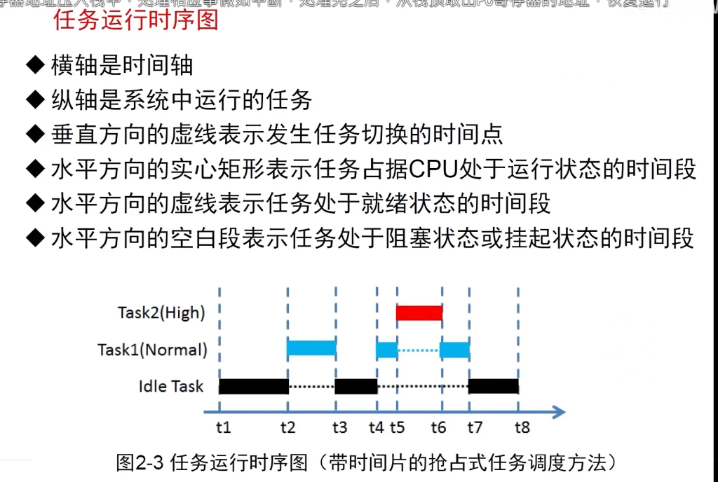 任务运行时序图解析 (带时间片的抢占式调度)